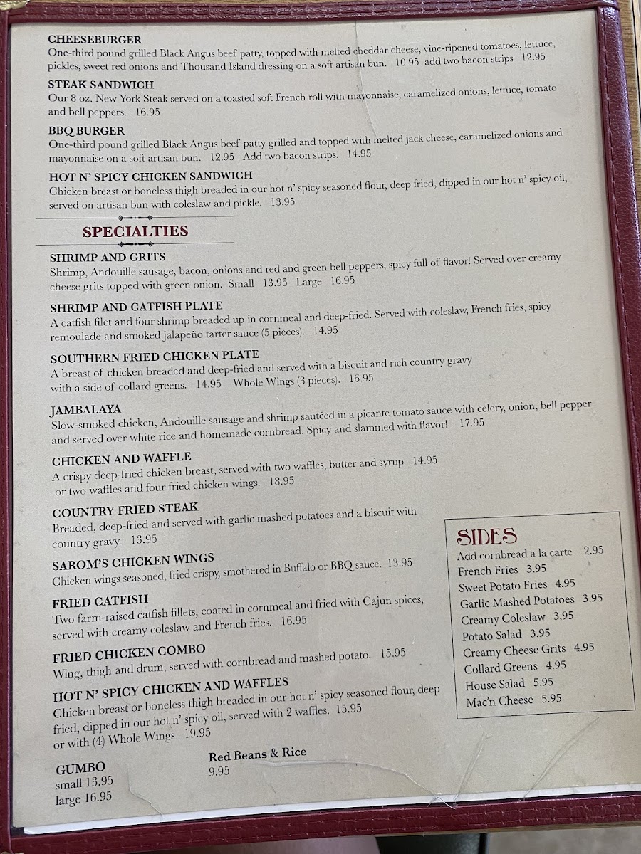 Shrimp, andouille sausage, bacon, onions and red and green bell peppers, spicy full of flavor! Served over creamy cheese grits topped with green onion.